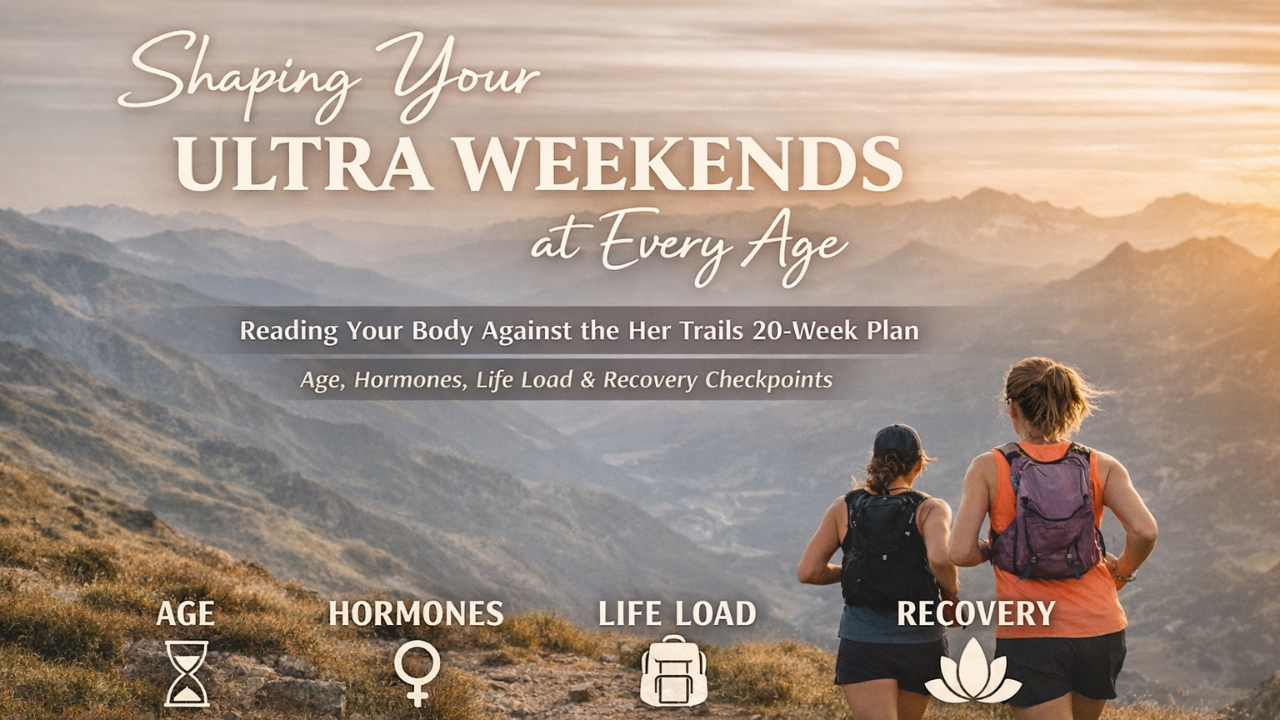 In Her Trails, you’re following a shared 20‑week framework, not an age‑segmented plan. The fundamentals of good ultra training stay the same; what shifts is how that plan lands in your body and your life at different times.
